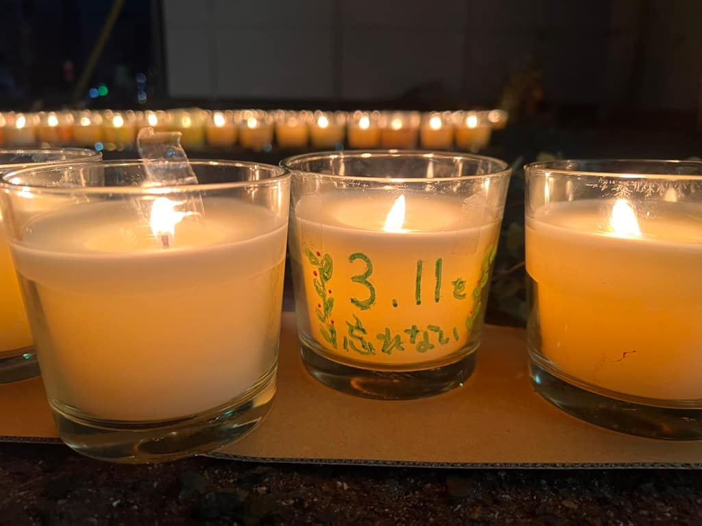 お一人おひとりの心を寄せたメッセージをキャンドルの「ともしび」に添えます。